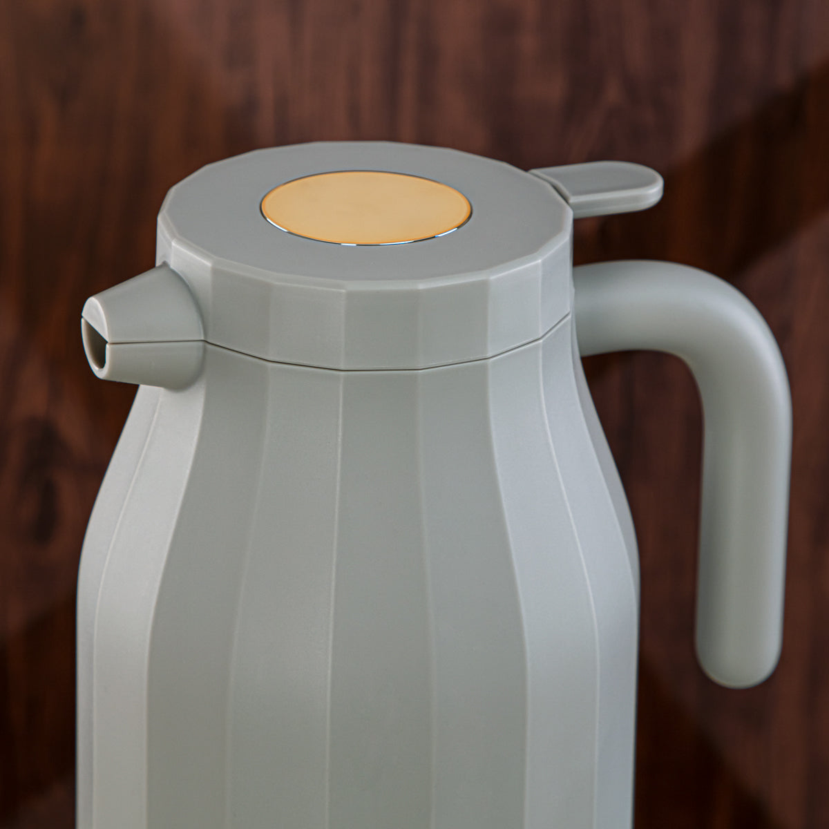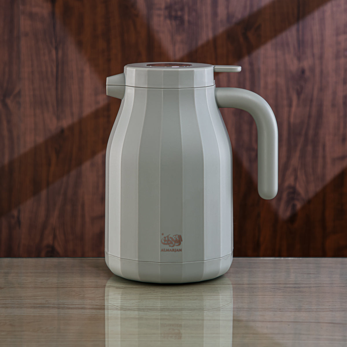 Experience the elegance of the Almarjan Vacuum Flask. This stylish 1.5 liter matt soft grey flask allows you to enjoy your favorite hot or cold beverages, with an easy push button and comfortable handle. Have your coffee, tea, karak, milk, or green tea without compromising on quality. Perfect for sophisticated and exclusive homes.